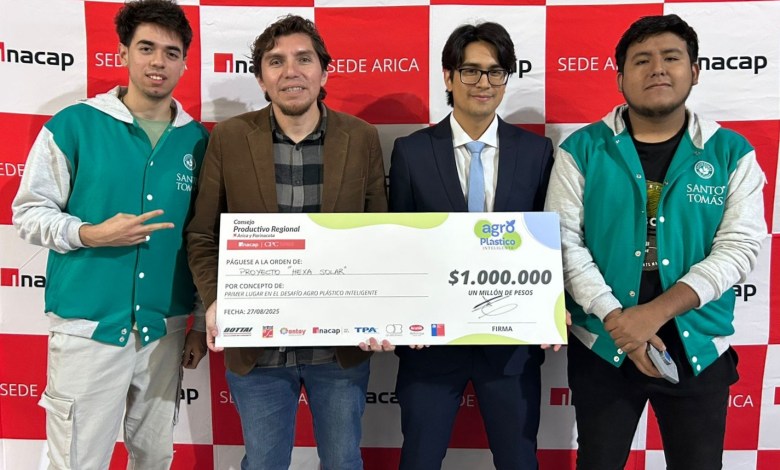 El talento estudiantil volvió a brillar en la nueva edición del Desafío Agro Plástico Inteligente, concurso organizado por Inacap que busca fomentar la innovación y el uso sustentable de materiales reciclados en soluciones aplicadas al mundo agrícola. Este año, los grandes ganadores fueron Bastián Fuentes, Dylan Cancino y Lewis Huaylla, quienes se adjudicaron el primer lugar con su proyecto “HexaSolar”, una iniciativa que combina eficiencia hídrica, reciclaje y energía renovable.